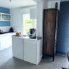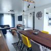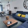 * Une cuisine entièrement équipée (lave-vaisselle, four, hotte, plaque vitrocéramique, grill, micro-onde, réfrigérateur/congélateur) avec accès terrasse et ouverte sur