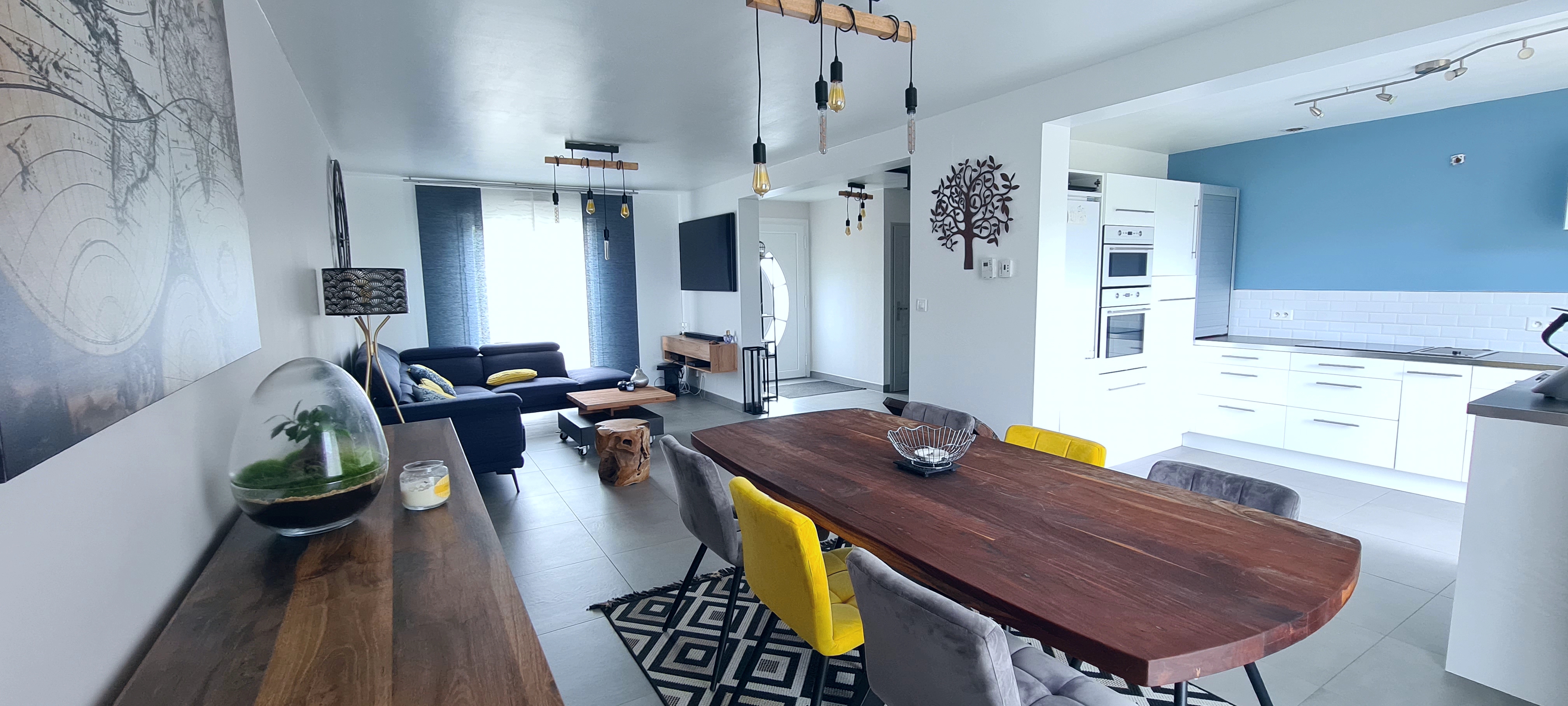 * Maison de 128.5m², mitoyenne d’un côté et par le garage uniquement