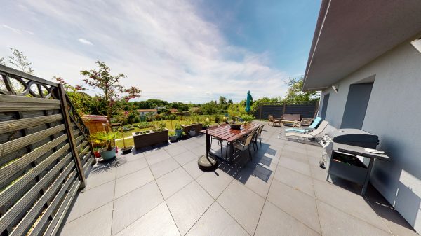 * Un garage attenant de 20m² avec porte motorisée et accès au jardin (pas d’accès direct depuis la maison)