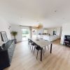 – Une cuisine équipée (four, micro-onde, lave-vaisselle, hotte, plaque de cuisson) ouverte sur salon/salle à manger avec accès terrasse/jardin