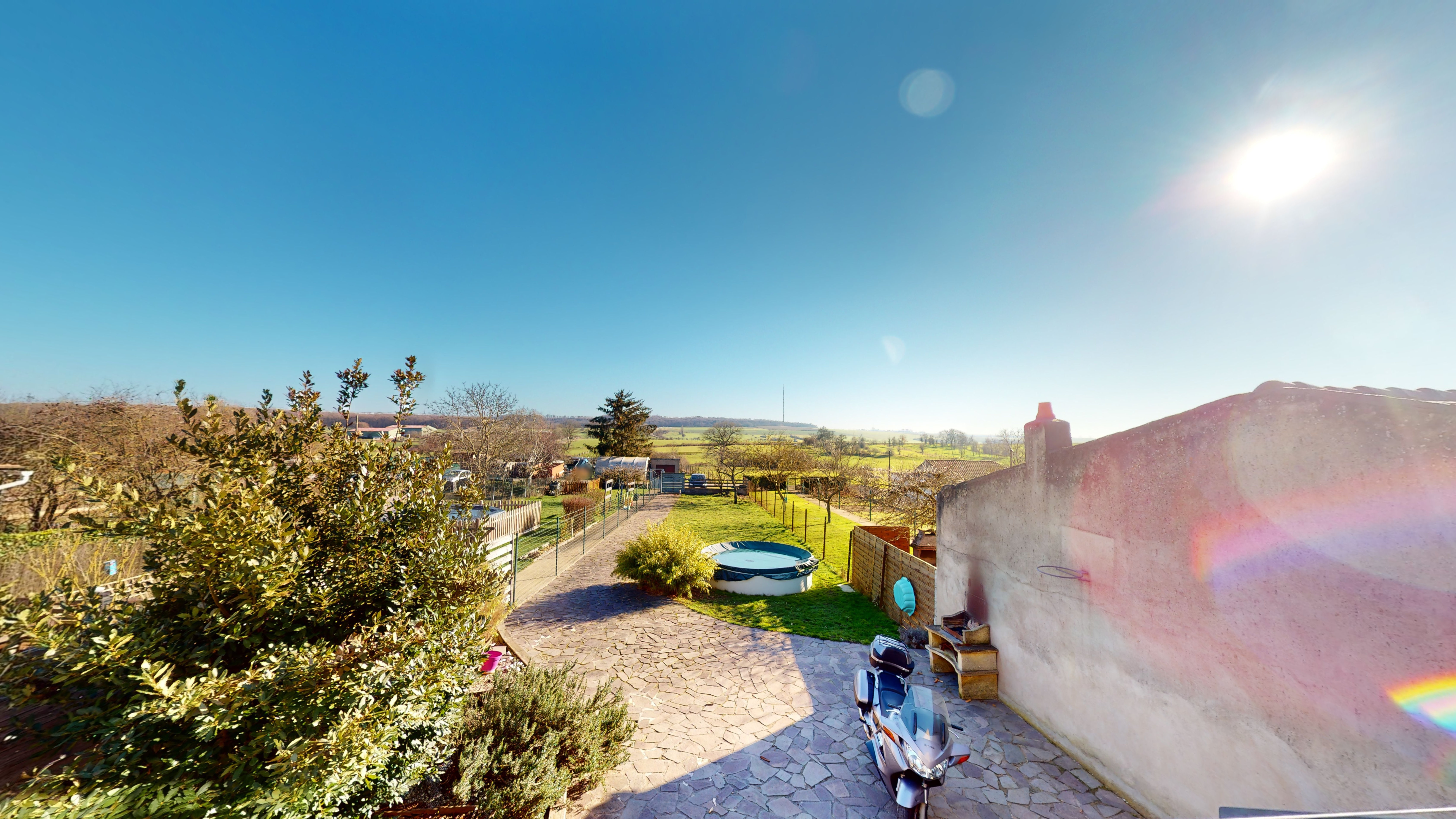 * Un accès au fond du jardin avec un portail et chemin agricole